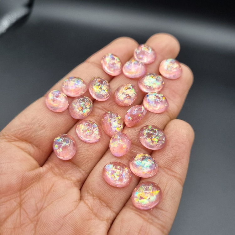 🟤 پک 20 عدد نگین رزین طرح اوپال با تلالو پولکی فوق العاده زیبا و خاص و عالی ابعاد ۱۲ در ۱۰